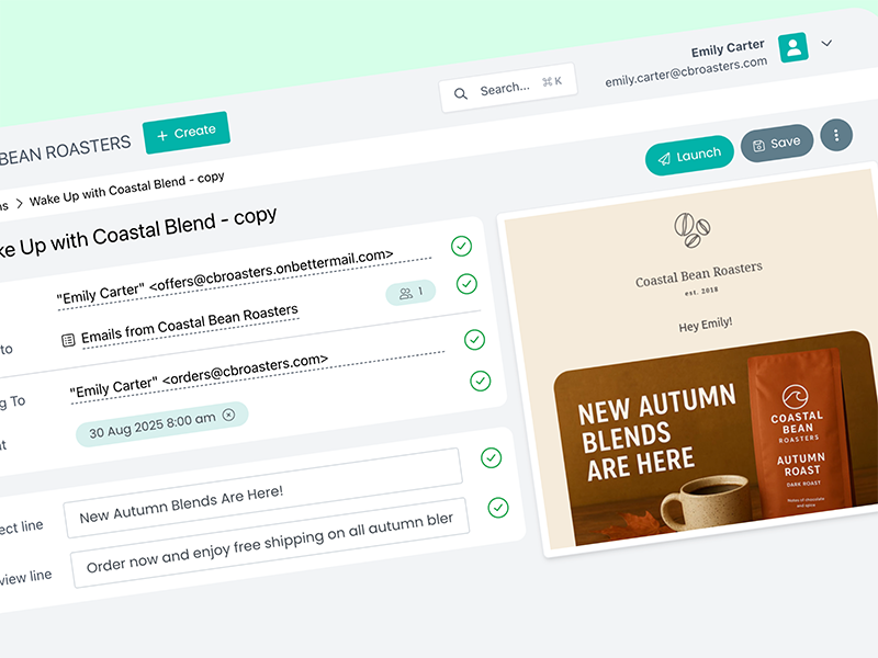 Transactional emails are triggered by user actions (like receipts or password resets), while campaign emails are bulk sends (like newsletters or promotions). BetterMail manages both seamlessly in one platform.