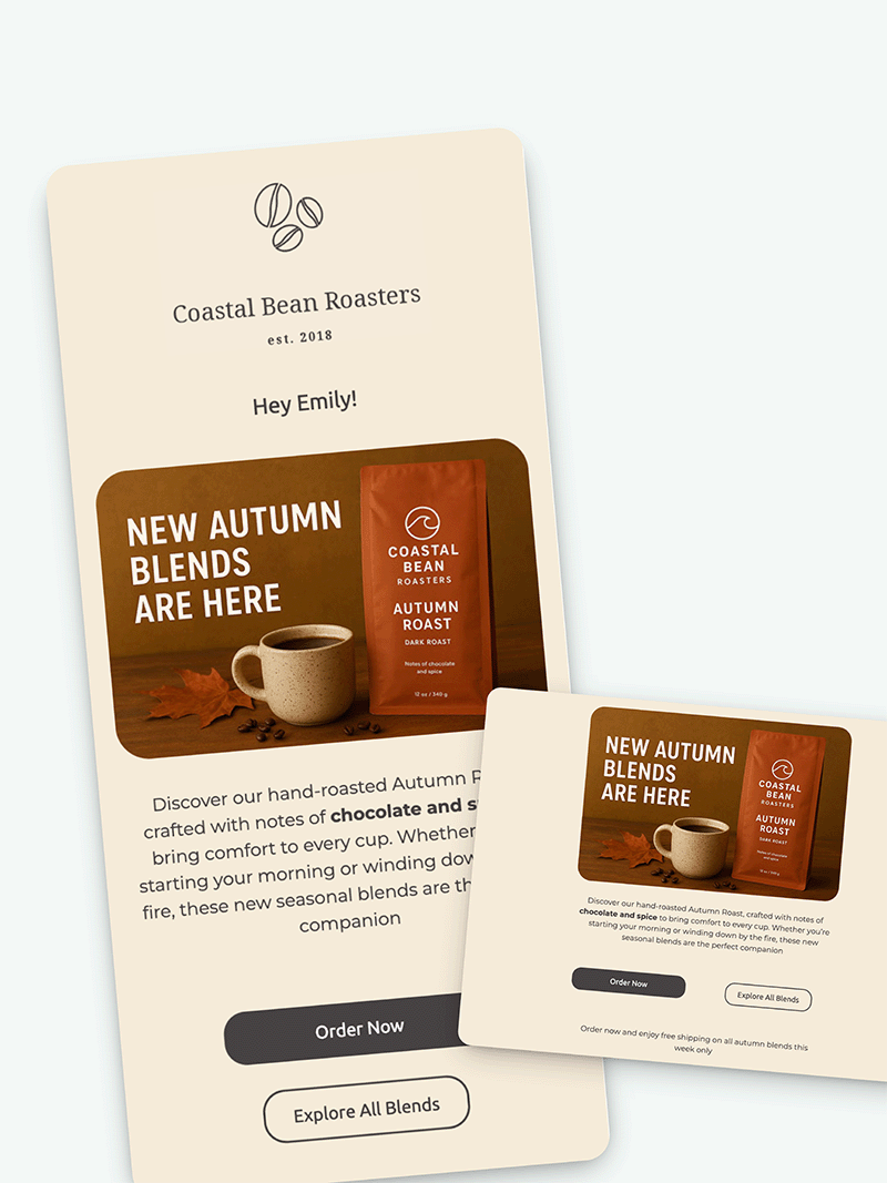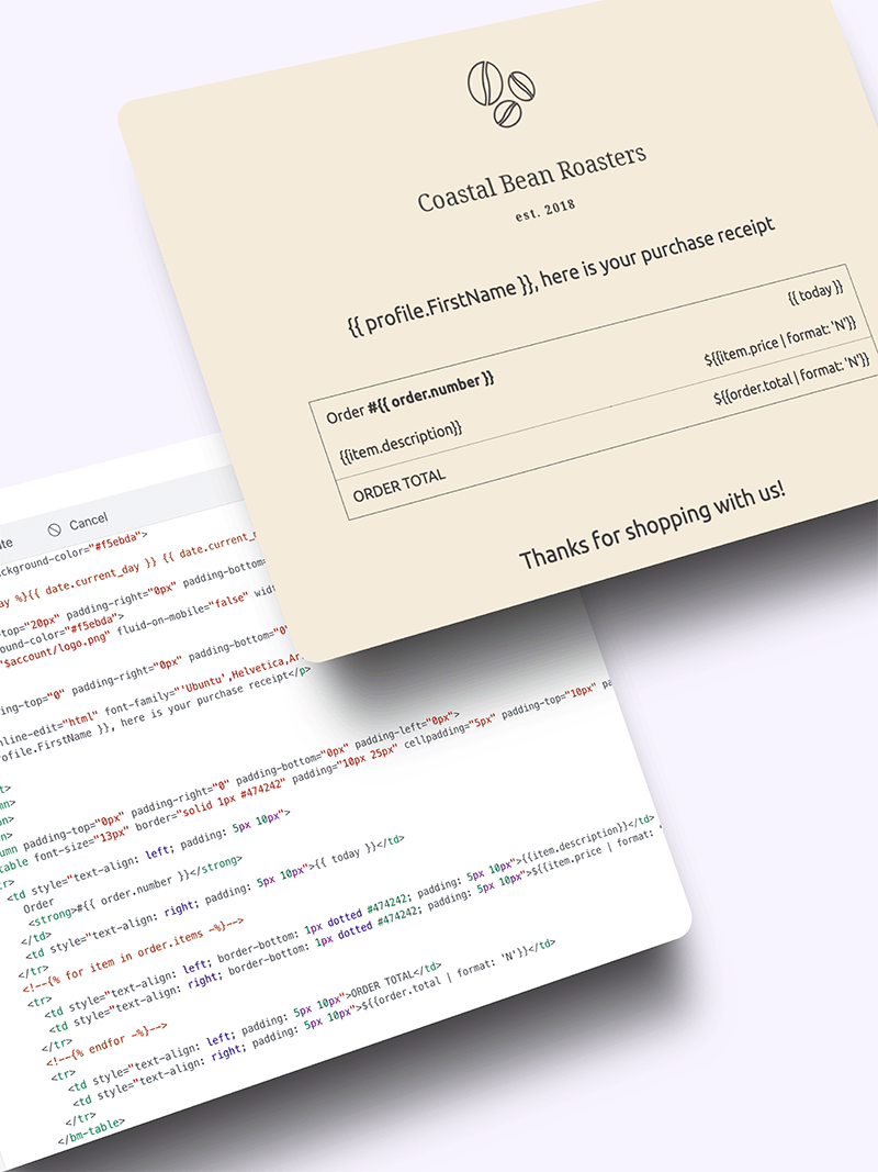Customize any template or start from scratch to showcase your brand with our powerful drag-and-drop email builder — no coding needed.