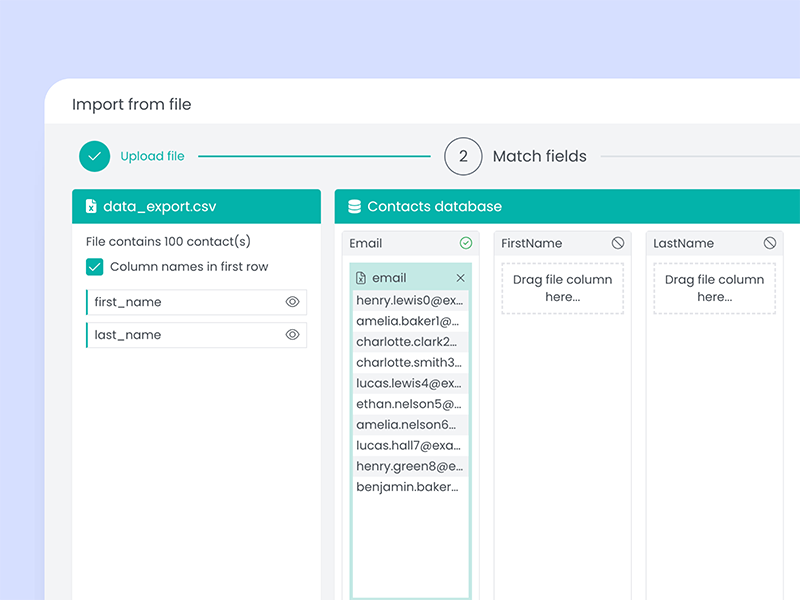 Import contacts from virtually any CRM. Use our powerful CSV importer for quick uploads, or set up a real-time sync with your database for effortless automation.