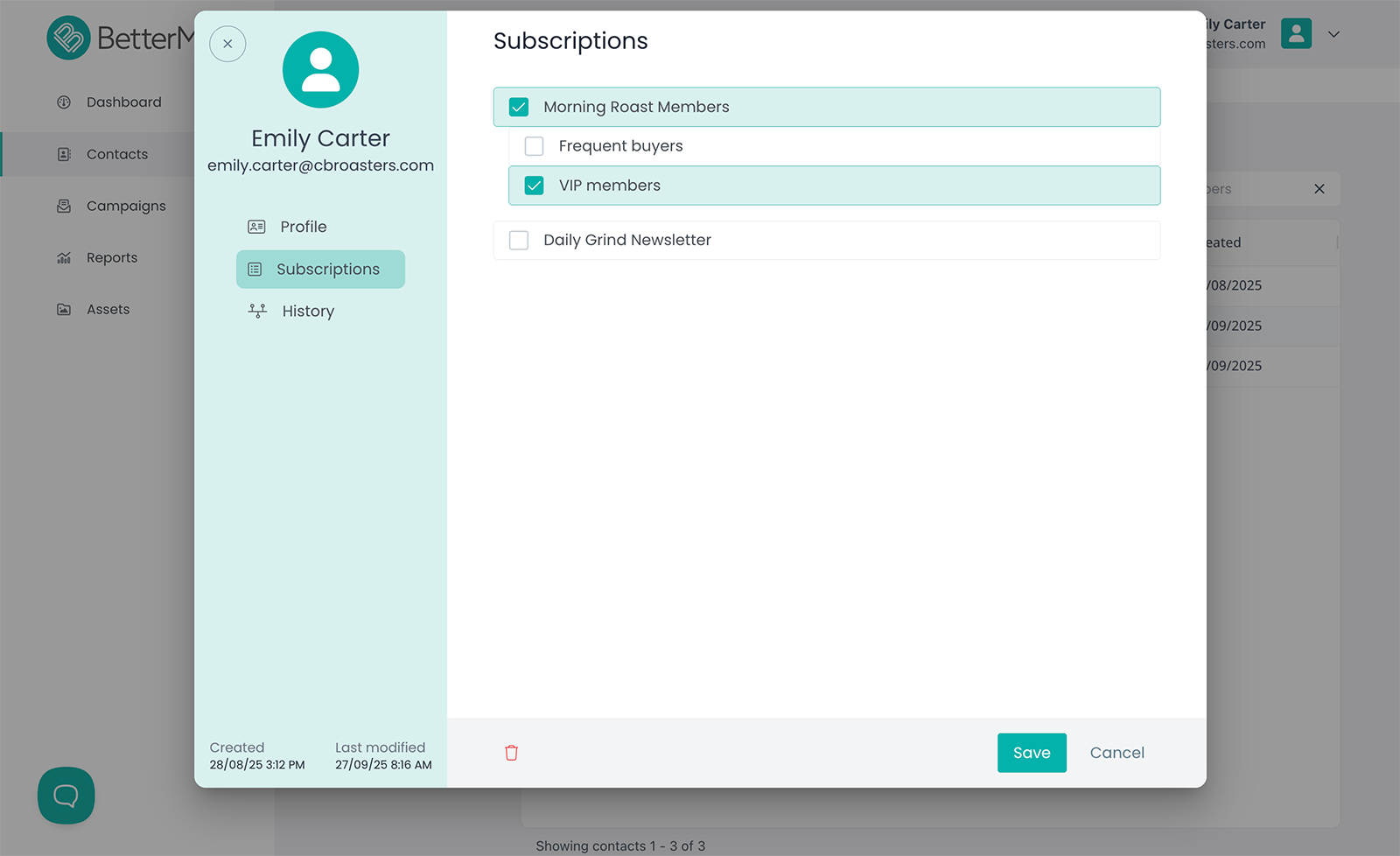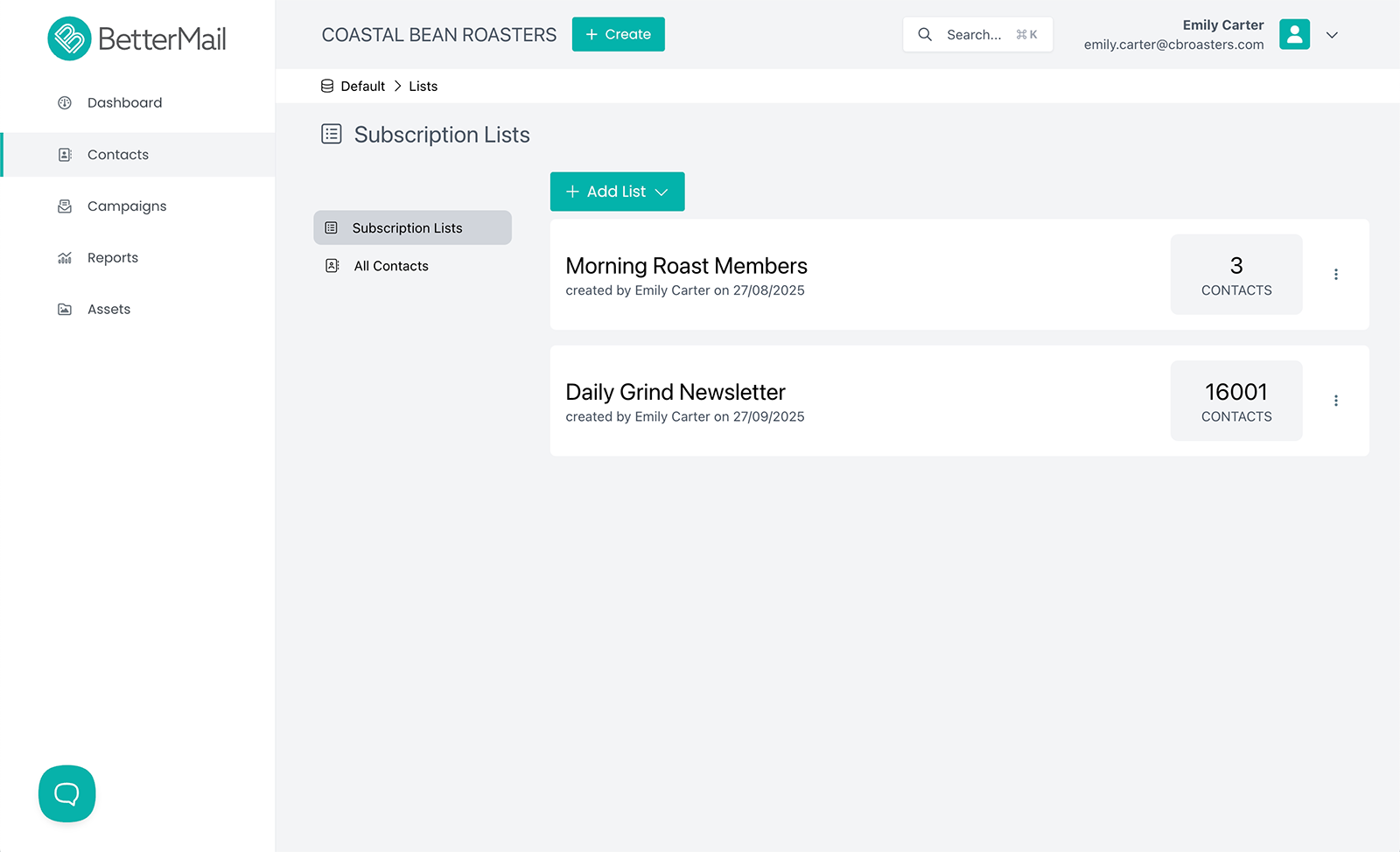 Manage every contact with confidence. BetterMail gives you full visibility into profiles, history, subscriptions, and preferences, so you can build smarter campaigns and stronger relationships.